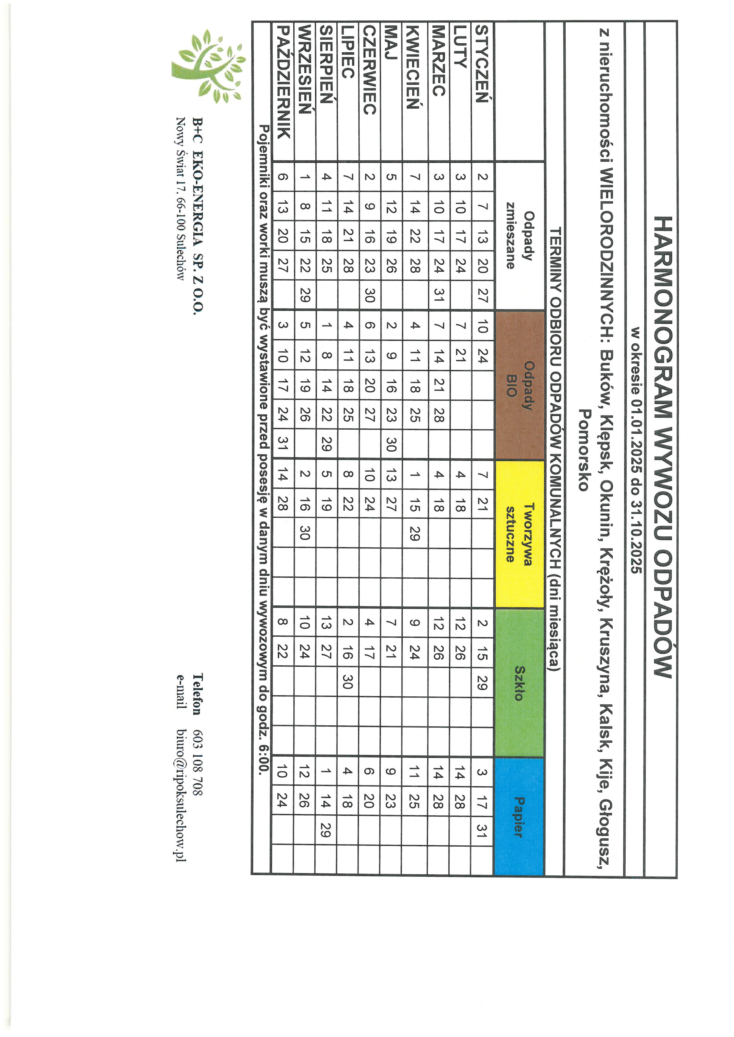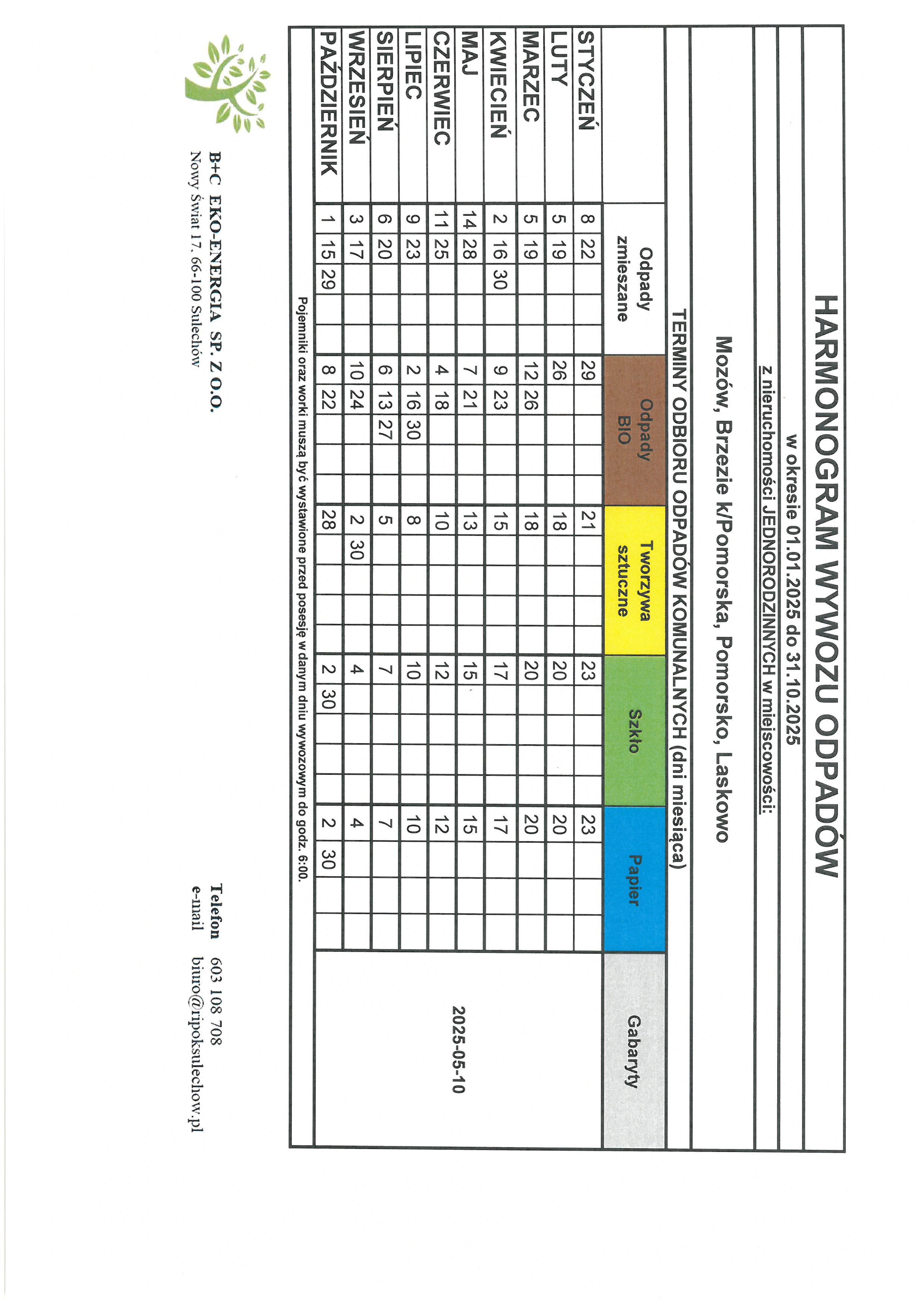 Plik jpg Harmonogram odbioru odpadów 01.01.2025-31.10.2025
