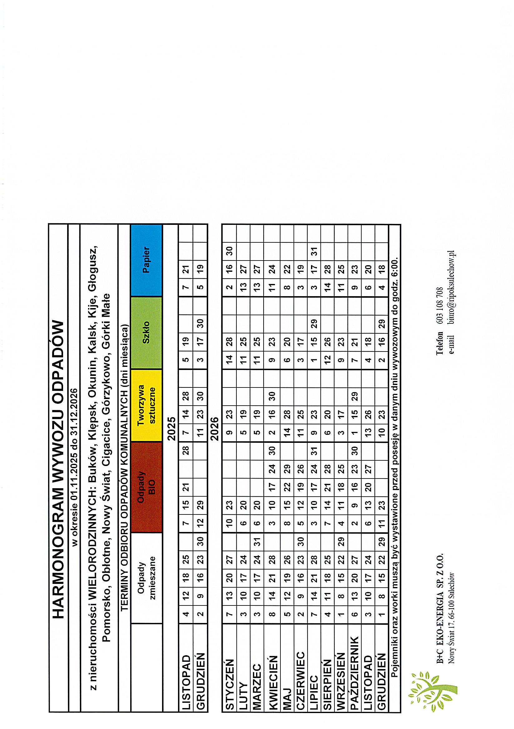 Buków, Klępsk, Okunin, Kalsk, Kije, Głogusz, Pomorsko, Obłotne, Nowy Świat, Cigacice, Górzykowo, Górki Małe