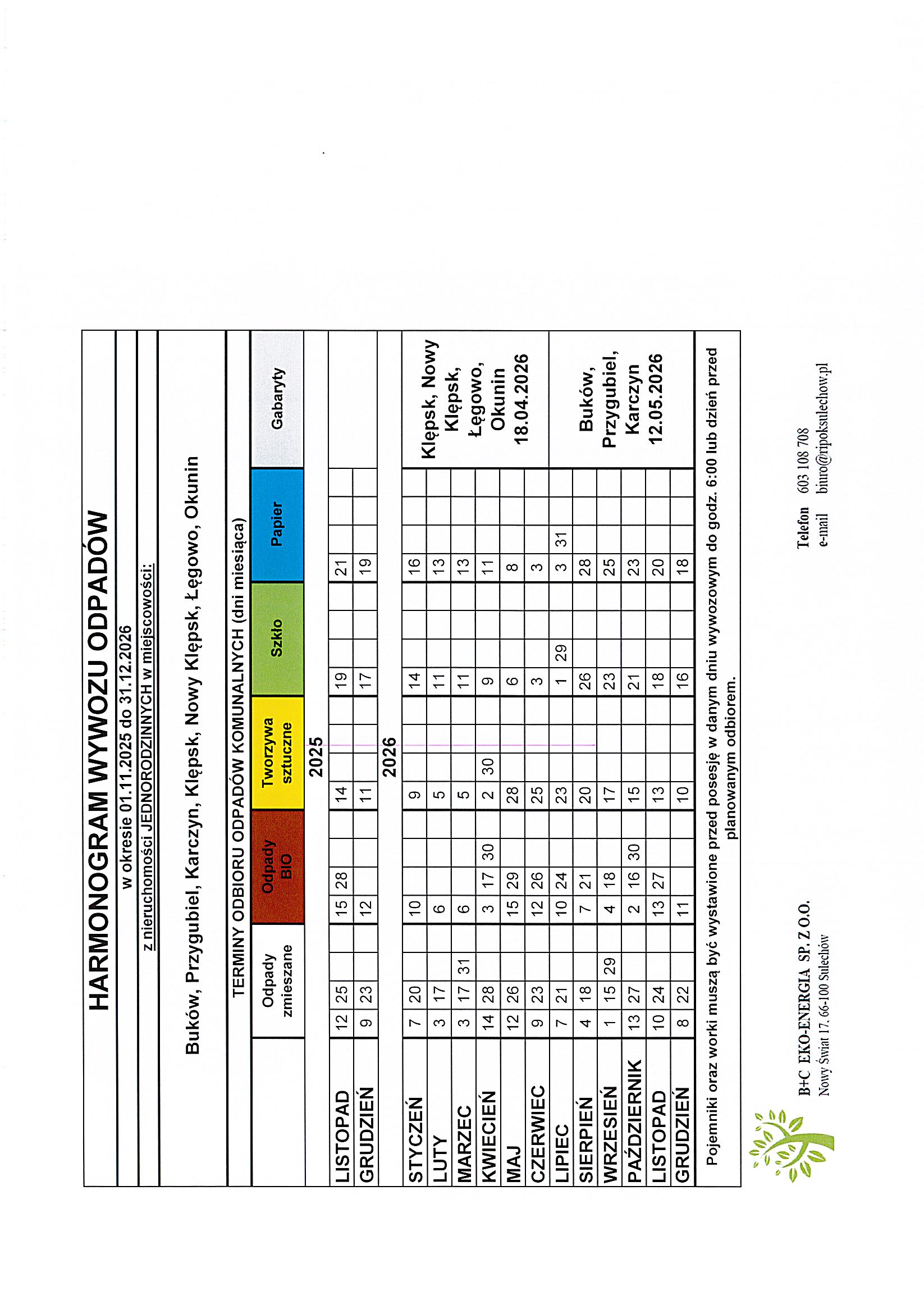 Buków, Przygubiel, Karczyn, Klępsk, Nowy Klępsk, Łęgowo, Okunin